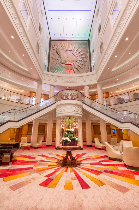 The theatre offers a range of performances every evening, including comedy acts, themed music nights, shows and more, as well as music in different parts of the ship thought the day, such as the harpist in the atrium. There is the illuminations room which offers the planetarium show, which is an incredible experience and something a little bit different. G32 is the nightclub onboard and is very popular during the evenings – we had a fun night at the silent disco there! For a quiet moment the library is a beautiful area to spend time reading, with a glorious view.”