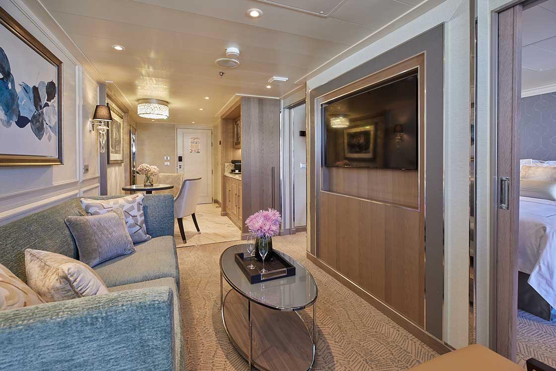 Seven Seas Grandeur boasts 15 stunning accommodation categories, ranging from 307 square feet to over 4,443 square feet. From the opulent $11,000-a-night Regent Suite to the contemporary Distinctive Suites, each design evokes an elevated, residential feel, emphasizing natural light, meticulous layouts, and exquisite materials.