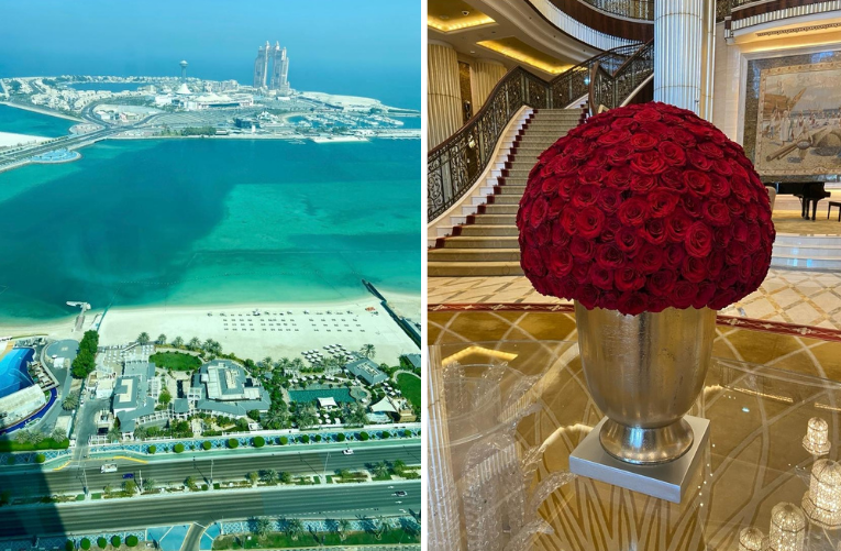 Back at the hotel, Helen got to sample rockstar life, “We had a tour round The Presidential Suite, situated on the top floor and suspended in midair, which is the highest in the world. Celebrities such as Mike Tyson, Adele and Stormzy have stayed here to enjoy its wonderful views of Abu Dhabi and the amazing sunsets. We enjoyed a champagne welcome in this two-story suite that includes three bedrooms, six gold bathrooms, a cigar lounge, private spa and its own cinema. Sadly we weren’t allowed to stay!”