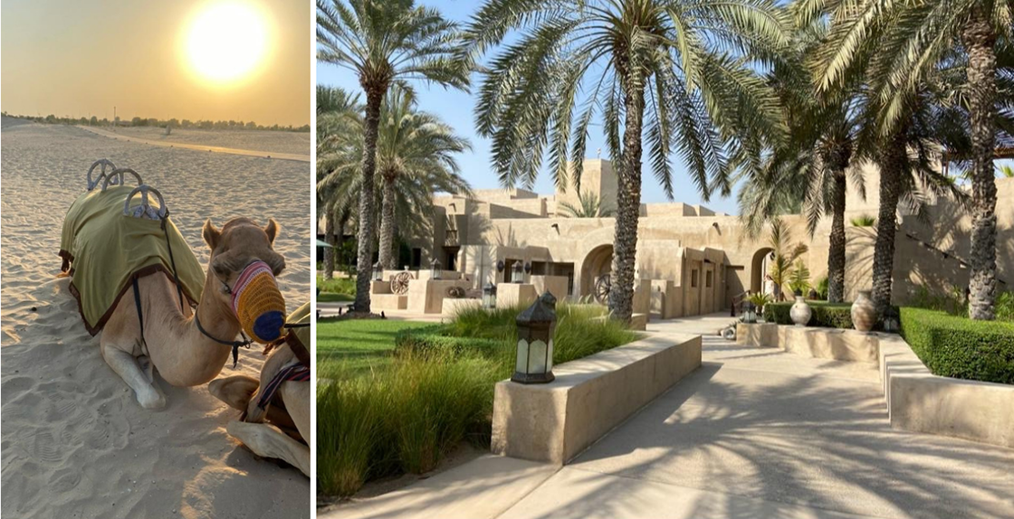 “We checked in to Bab Al Shams luxury desert resort,” says Helen, “and this was my favourite hotel of the trip. Situated in the desert with an authentic Arabian feel, it has a real sense of luxurious wellbeing with treatments, yoga and meditation sessions in an idyllic setting. The suites are beautifully designed with views of the desert wilderness. We ventured out on a 4 x4 Desert Safari over the dunes, seeing roaming camels and wild onyx. I enjoyed a camel ride, which really made the whole experience. That evening we dined in the desert, under the stars in an open-air restaurant. We were served authentic middle eastern cuisine as dancers, musicians, falconers & camel riders came to entertain us – it was an evening like no other.”