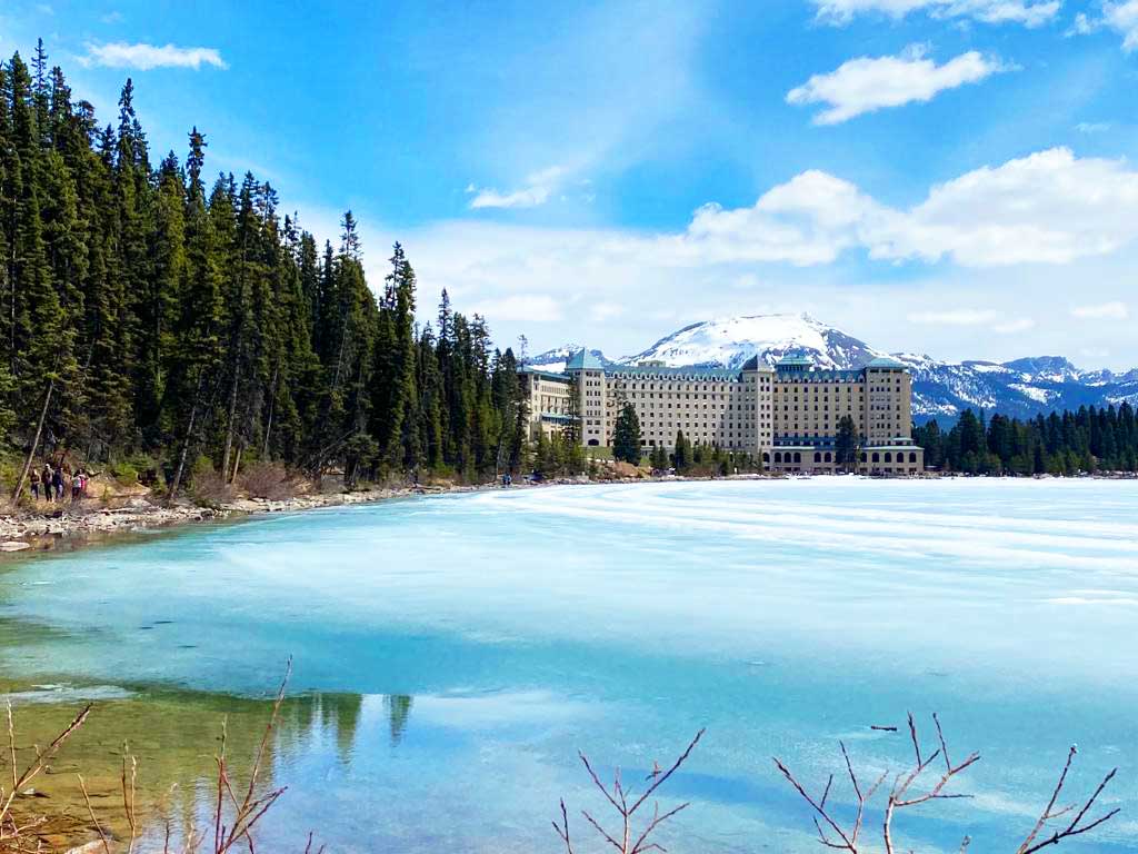 There are so many beautiful locations at Lake Louise where you can take fantastic photos. At that particular time of year, in May, the edge of the lake was just melting and you were able to get a glimpse of the beautiful blue colour that the lake is renowned for. I liked that we were able to see the ice as well and it was a lovely sunny day. All of the hotel and its grounds are stunningly beautiful and I would love to return and stay for a short while in the future.