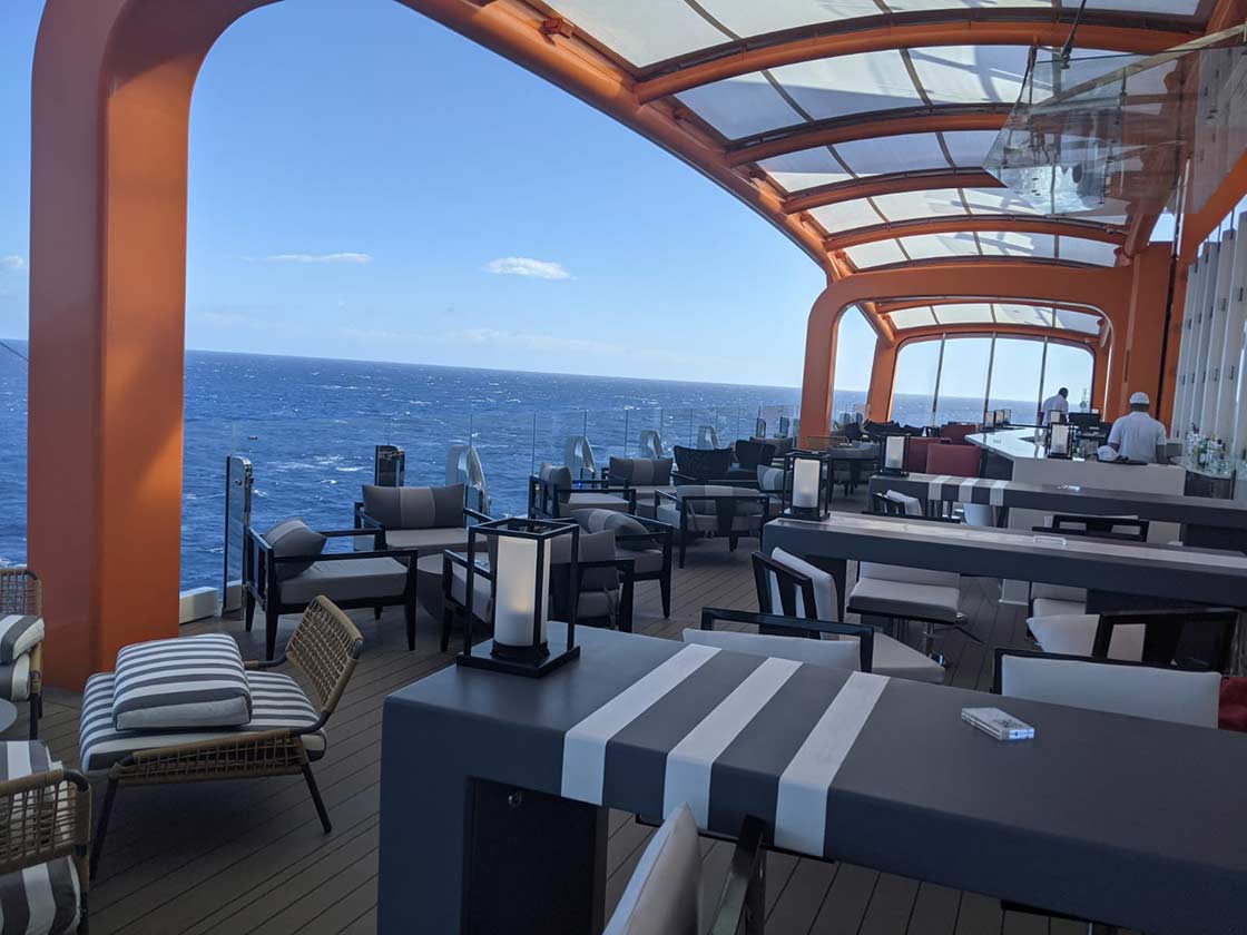 The retreat is a beautiful area at the top and front of the ship, available only to suite guests. When the weather wasn’t so great, I loved sitting and relaxing in the solarium. It’s a really lovely inside area with pool, hot tubs and a café and juice bar.