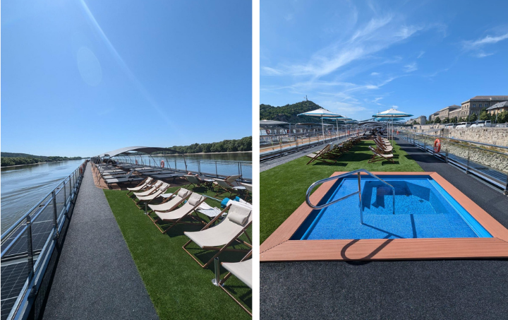 There was plenty of room onboard and although the ship was full it didn’t feel crowded. We often chose to sit in the bar area at the front of the ship of an evening, but the lounge was popular with so many windows overlooking the river, and the roof deck with many sun loungers, hammocks and a plunge pool was lovely too, considering the glorious weather we had. Most evenings we were provided entertainment of sorts, often a piano player, but we also had a quiz night, Hungarian dances and a classical concert in Vienna which was really nice.
