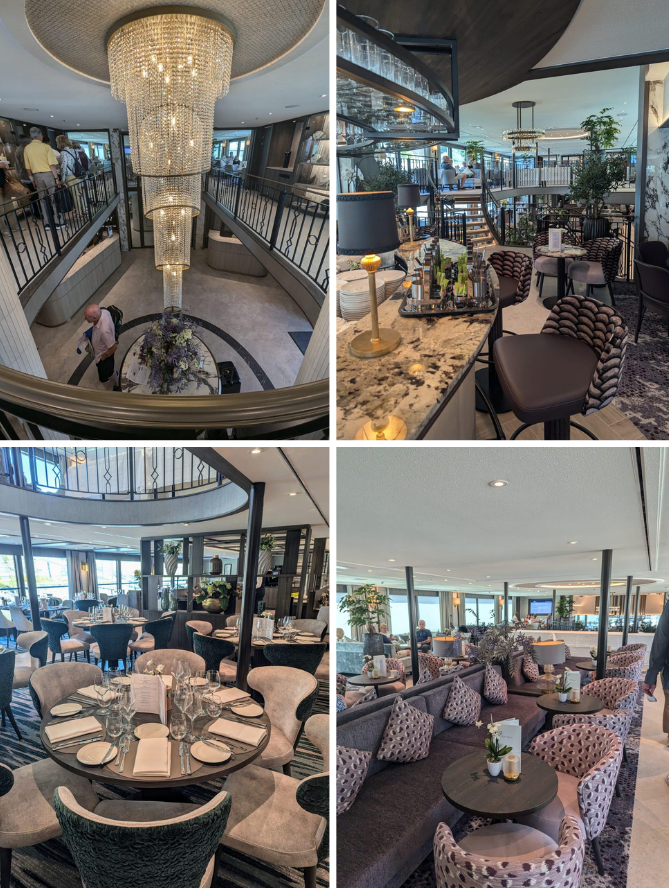There are 3 restaurants onboard, all serving a variety of amazing dishes, The main restaurant changed its menu every evening, Mosaic had a set menu for the week and Riverside had a more casual burger / pizza / fish and chip menu at lunch and changed to a la carte in the evening. There really were enough options to suit all tastes, however the staff were more than happy to make you something different if you didn’t like the menu choices. The mushroom wellington at the Captain’s Dinner was my absolute favourite. There were free drinks onboard with lunch and from 6 to midnight, which I thought was a great extra.