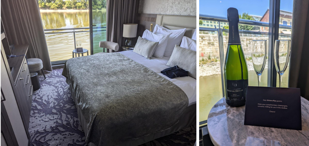 Riveira Radiance is a beautiful new ship, and this was only her third voyage, so I felt very lucky to be onboard. The décor is modern and light, in shades of grey and heather with subtle textural and floral hints and crystal elements, which made it feel very luxurious. My cabin was on the top deck and had a mountain of comfy pillows. The floor to ceiling window opened fully and was perfect for watching the gorgeous river views drift by. There was plenty of storage space and the rain shower was simply amazing. Toiletries were of good quality and there was a kettle and coffee machine in my cabin, although I didn’t use this much as tea coffee and hot chocolate were readily available 24hrs a day and came with a constant supply of cookies. My cabin was cleaned twice a day, and I received a newsletter for the following day’s activities, a chocolate on my pillow and a couple of times a small gift, which was a lovely touch that I wasn’t expecting.