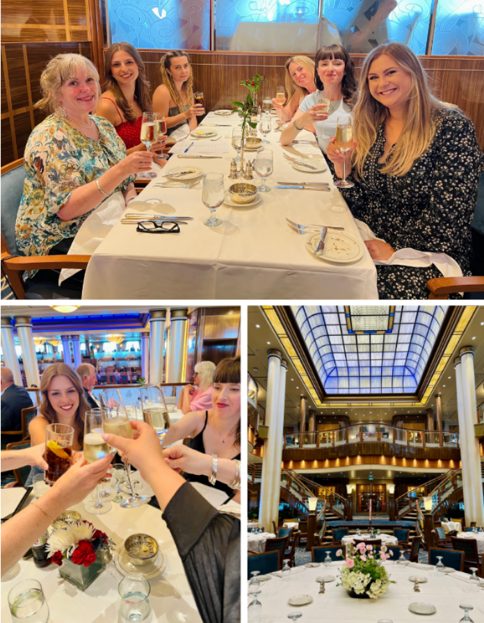 Maggie: I loved sitting down for our team dinners each evening – we spruced ourselves up after our busy days, and sat in the beautiful main Britannia Restaurant, which really felt like the golden age of transatlantic cruising, with its classic styling and elegant atmosphere.