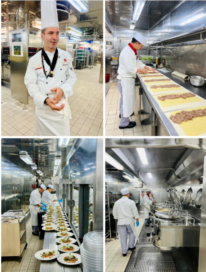 Rhea: The Galley Tour was such a fascinating experience. Walking through the Britannia Restaurant’s working kitchens, we got to see all the different stations and watch the crew in action as they prepped for that evening’s dinner. The scale of it all was incredible - seeing the organisation and artistry behind every plate made me appreciate every meal onboard even more!