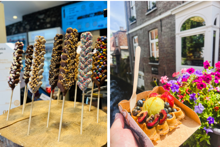 Amy: Bruges might be one of the prettiest places I’ve ever visited. Cobblestone streets, canals, gothic architecture – it’s like stepping into a storybook. We strolled through Market Square, visited the breathtaking Basilica of the Holy Blood, took a 15-euro canal boat tour (worth every cent!), and indulged in the city’s best treats: waffles from Otto Atelier and crispy Belgian fries from Fritbar. Wandering around Koningin Astridpark and soaking in the details of the basilica’s interior – gilt paintwork, stained glass, serene silence – were unforgettable.