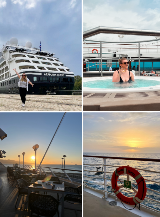Amy, our Digital Marketing Manager, was very lucky to be invited onboard the beautiful Azamara Quest for a three night Seminar at Sea, hosted by Stuart Pearce, Azamara’s Director of Sales for UK & Ireland, alongside a small group of industry partners. The aim was to experience Azamara exactly the way our customers do, and after three unforgettable nights onboard, she completely understood why guests fall in love with this luxury brand: