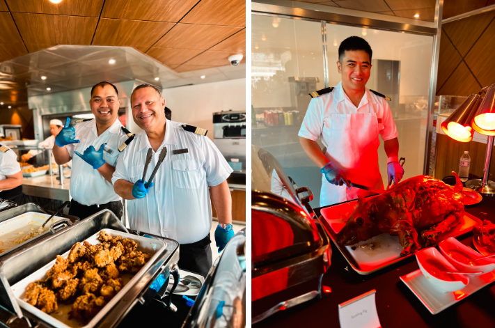 The Food onboard was genuinely outstanding, but one standout moment was the Officers BBQ. Watching senior crew members serving guests created such a warm, friendly atmosphere - it felt personal, relaxed and incredibly special.