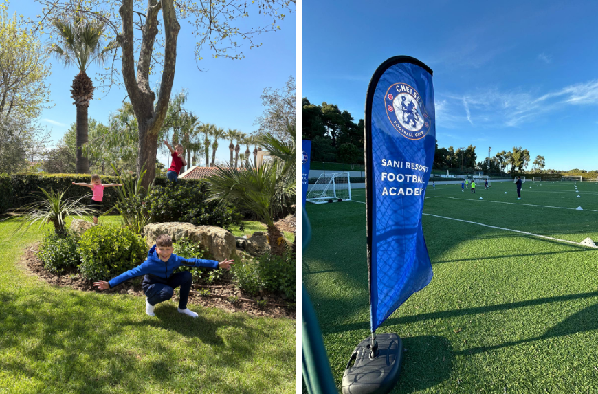 There are many, many ways to pass your day at Sani Resort. Their Academies offer tuition and activities in waterskiing, sailing, triathlon and biking, and they have partnered with famous experts for the Chelsea FC Football, Rafa Nadal Tennis and Bear Grylls Survival Academies. On the water you can enjoy windsurfing, catamaran sailing, kayaking, wake boarding, parasailing, snorkelling, diving, and even synchronised swimming! To enjoy the natural surroundings on land there are guided nature walks, a climbing wall, bike and scooter hire, and all the kids club are complimentary, which means all members of the family can enjoy some time doing their own thing, safe in the knowledge that everyone else is having a great time. Emma confirms, “We really enjoyed the facilities. My son went to the Chelsea Football Academy which was incredible. My other son enjoyed the high ropes in the forest and playing basketball, and my youngest daughter had fun in the kids club. I loved the spa and sampling the restaurants with my husband!”