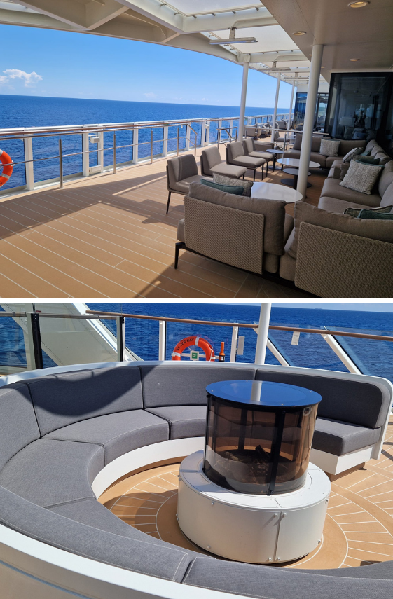 Silver Ray is Silversea’s second Nova Class ship, joining the fleet in the summer of 2024. Named after a ray of light, she features a pioneering design and exceptional use of glass to ensure maximum open views all around the ship, from the expansive public areas to the luxury suites. “Silver Ray felt very stylish and modern as I stepped onboard,” says Emily, “Check in was nice and easy, then a butler greeted me and took me to my cabin.”
