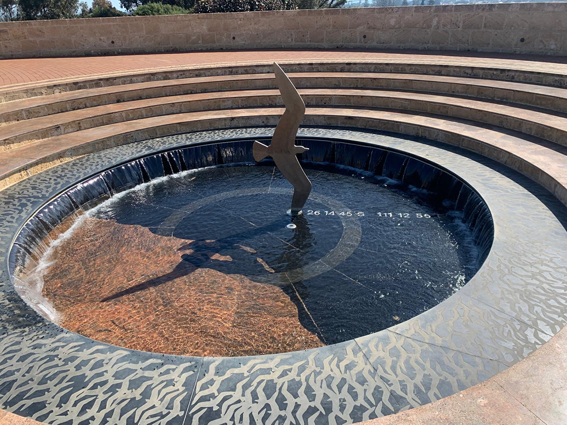 After 2 hours we arrived at Jurien Bay which allowed us to stretch our legs with a walk on the beach and lunch in a typical Australian beach café. Back on the road again with another comfort break at Dongara and finally on to Geraldton for a poignant visit to the memorial to HMAS Sydney – the largest allied warship sunk in World War 2, with all 645 crew going down with the ship.