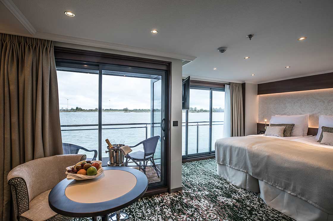 The MS William Wordsworth welcomes guests with an ambiance of refined elegance, evoking the charm of a boutique hotel on water. Marble floors, rich hardwoods, and gleaming brass accents adorn the ship's interior, creating an atmosphere of understated luxury. Spacious and airy, the vessel offers an intimate setting for exploration and relaxation, with comfortable cabins featuring sumptuous bedding and panoramic windows framing picturesque vistas.