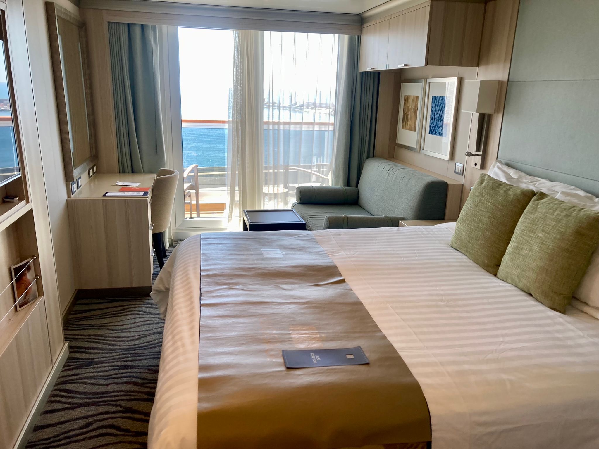 Isabella stayed in a Verandah cabin, which she confirms is “spacious, clean and comfortable.” Floor-to-ceiling windows overlook a private verandah and include a sitting area and a bathtub with massage showerheads for a relaxing soak after a hard day’s cruising. Isabella advises, “There is no need to bring shampoo, conditioner or a towel as these are all provided. Flip flops for around the pool are good to pack!”